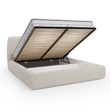 Dites adieu au manque de place grâce à son coffre de rangement spacieux. Parfait pour dissimuler linge de lit, oreillers ou couettes, il vous permet de garder une chambre toujours ordonnée et épurée. Le tout s’ouvre en douceur grâce à un mécanisme à vérins à gaz, simple et sécurisé.